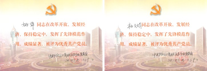 2010年6月,姚舜、杨文娟被中共武昌区工商联会员企业委员会评为“优秀共产党员” 2010-06-30   MORE